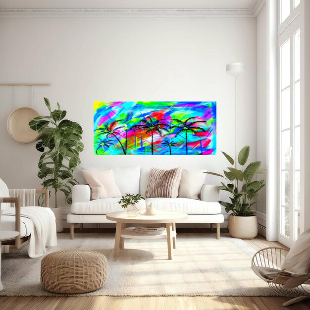 Artist Note: The use of neon paints in this painting made me feel like I was at a festive nighttime "Party in Brazil," where music, dancing and laughter fill the air.